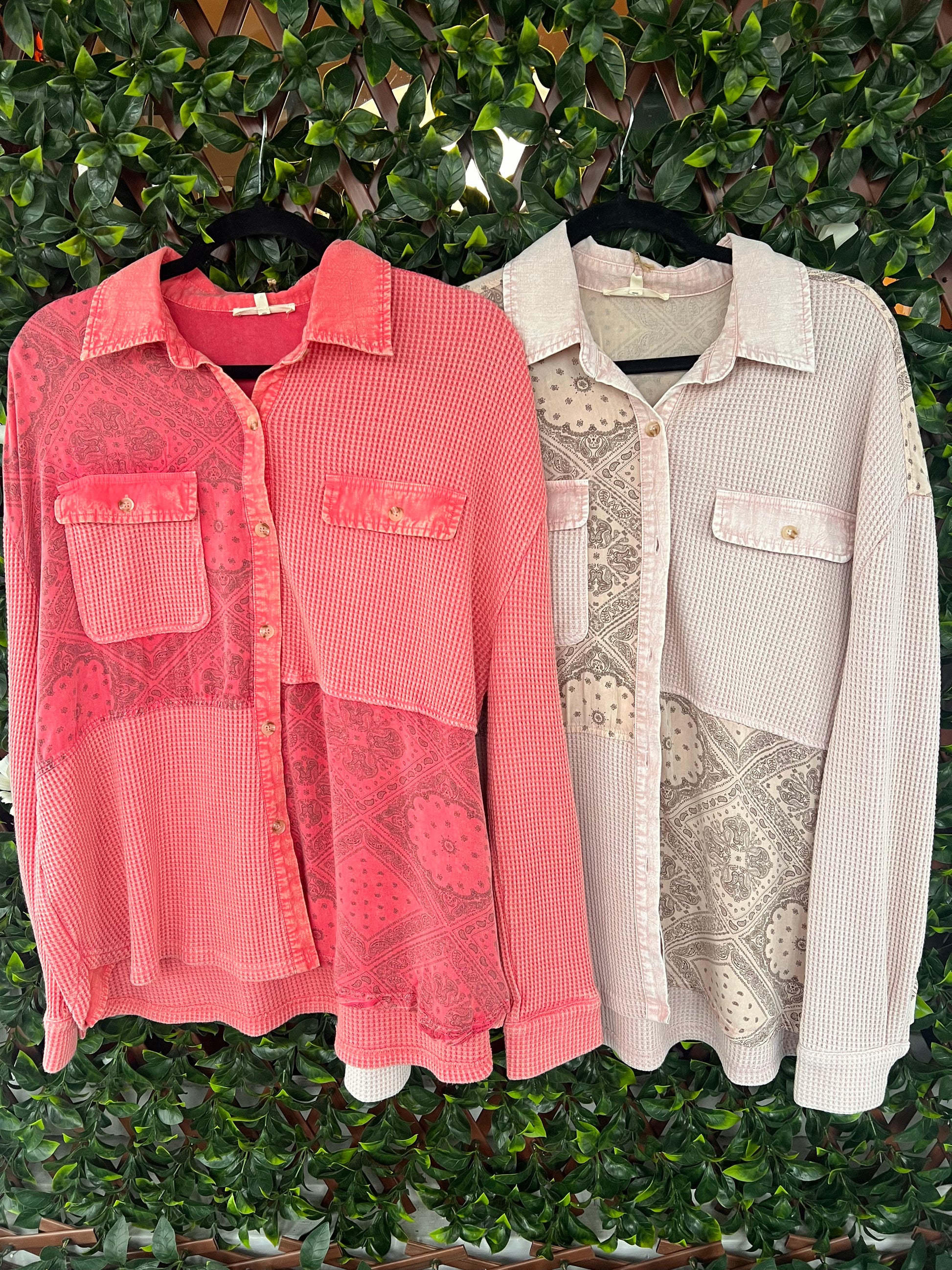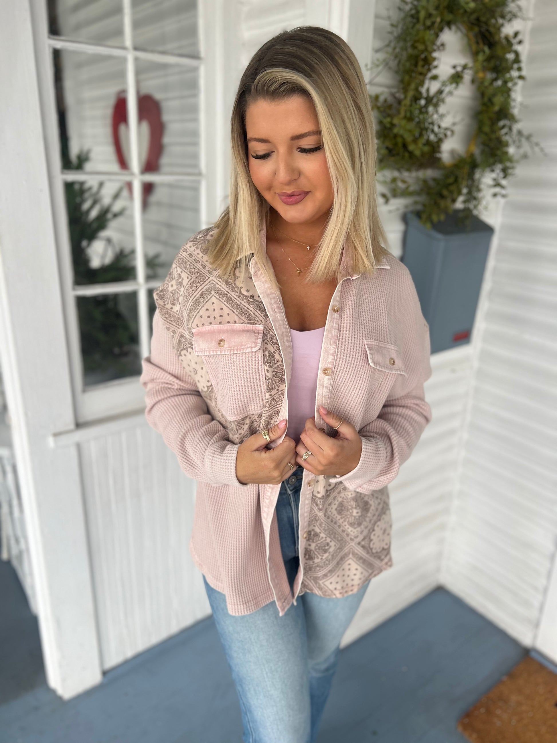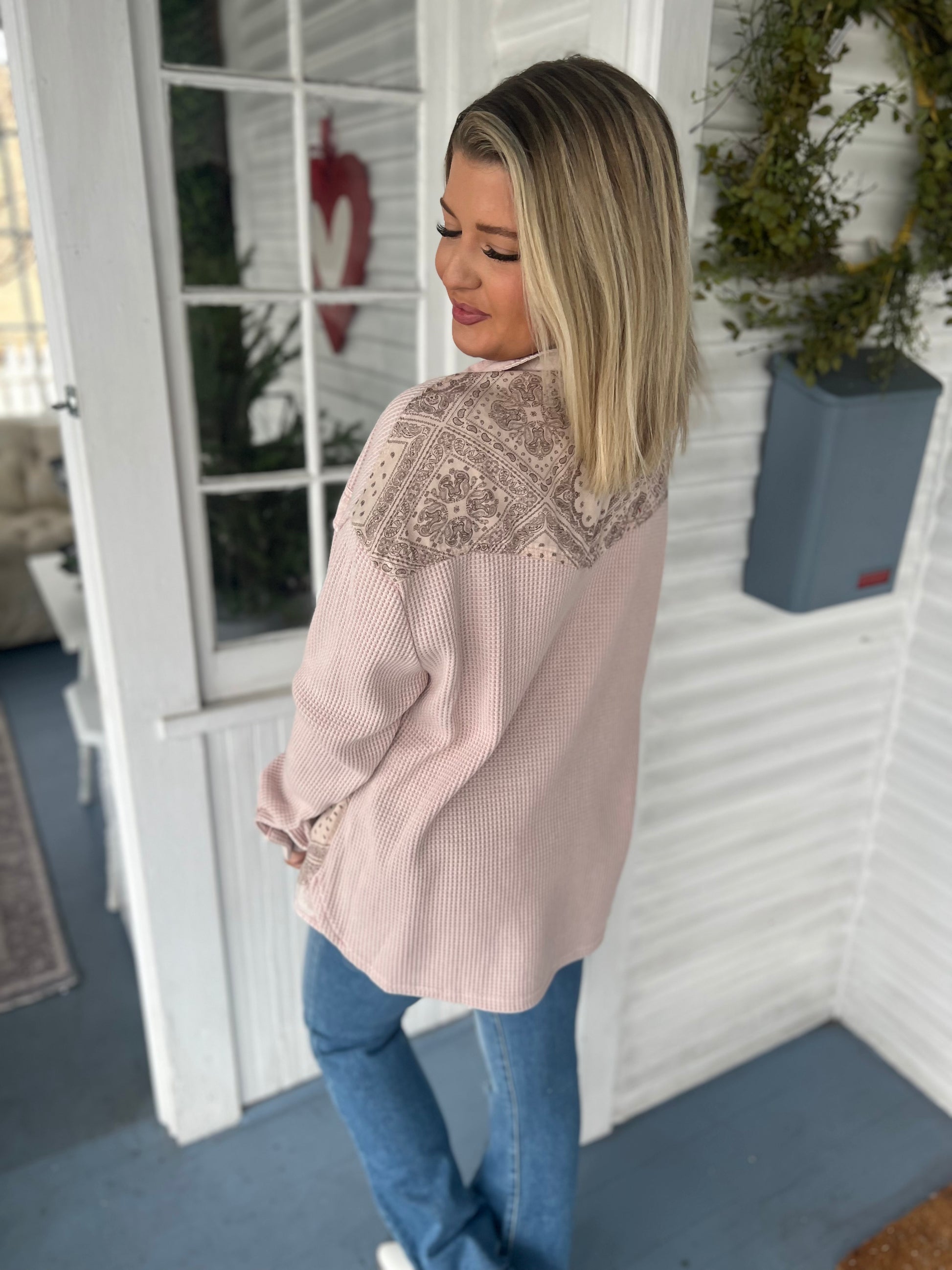 Bandana Waffle Mix LS Button Top