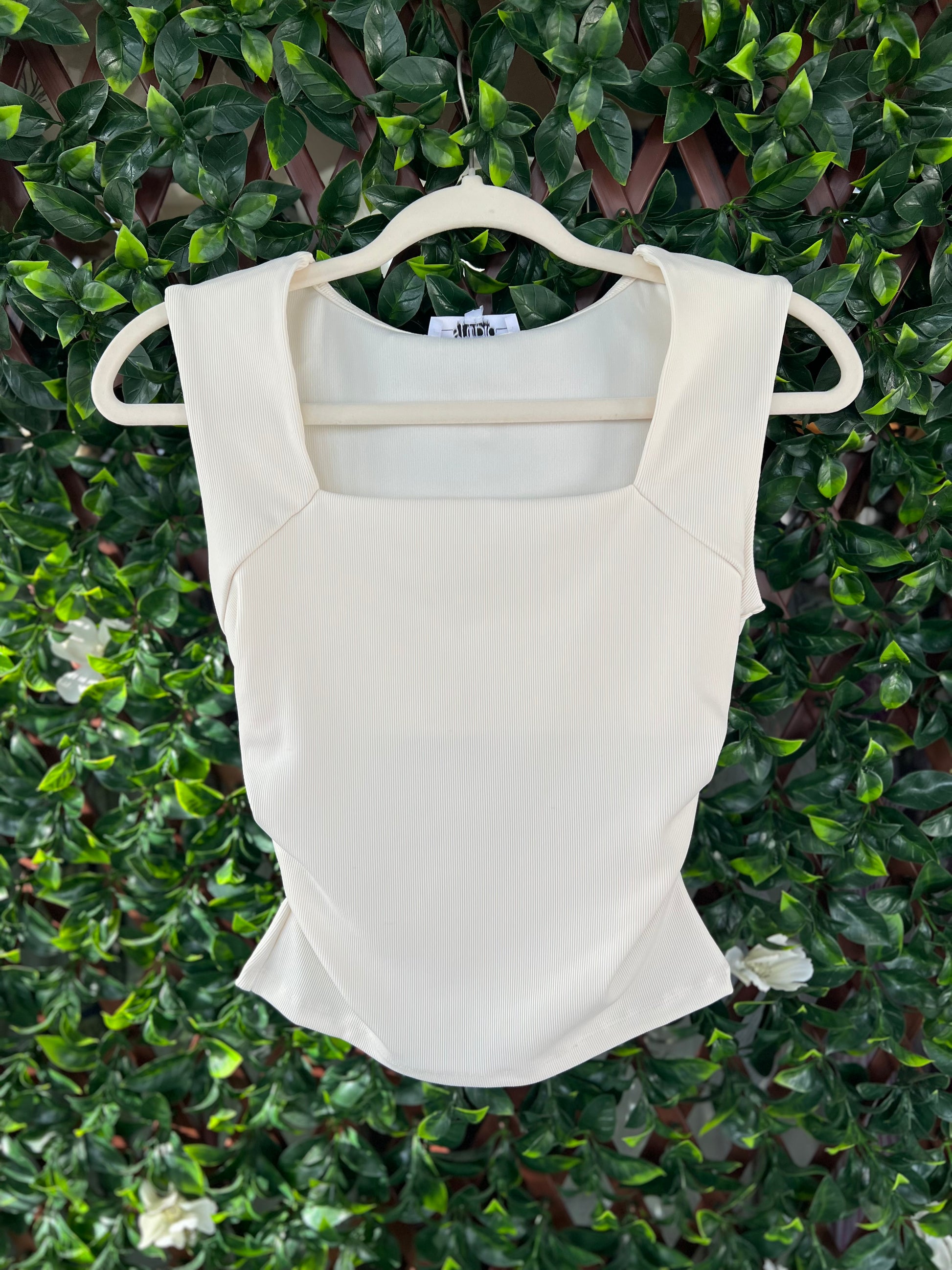 Square Neck Sleeveless Ruched Top